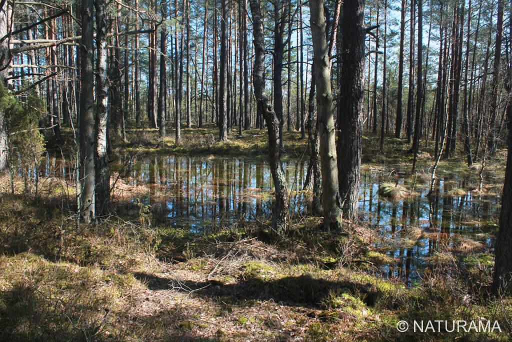 Krakinio ežerą gailinias pušynas, kuriuo praeiti gan sunku – ne tik dėl tankaus pelkinių gailių kilimo, bet ir pats miškas čia klampus, dažnai užsemiamas.